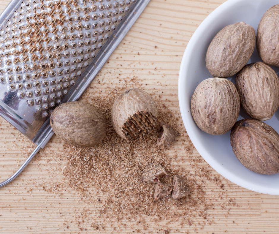 Nutmeg is a shelled, dried seed derived from Myristica fragrans, a tropical evergreen tree. A pinch of nutmeg adds a different flavour to soups, meat gravies, steaks and various desserts.