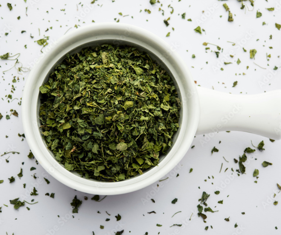 Fenugreek leaves, also known as Kasuri Methi, are among the healthiest green leafy vegetables. It has been used to add flavour to food for a long time. Also, it is a spice that is used in many dishes around the world. They give curries and stir-fries a mild, slightly bitter, nutty flavour. Fenugreek leaves have been known for years to be the best way to lower cholesterol, triglyceride, and LDL levels, which helps fight diabetes symptoms.
